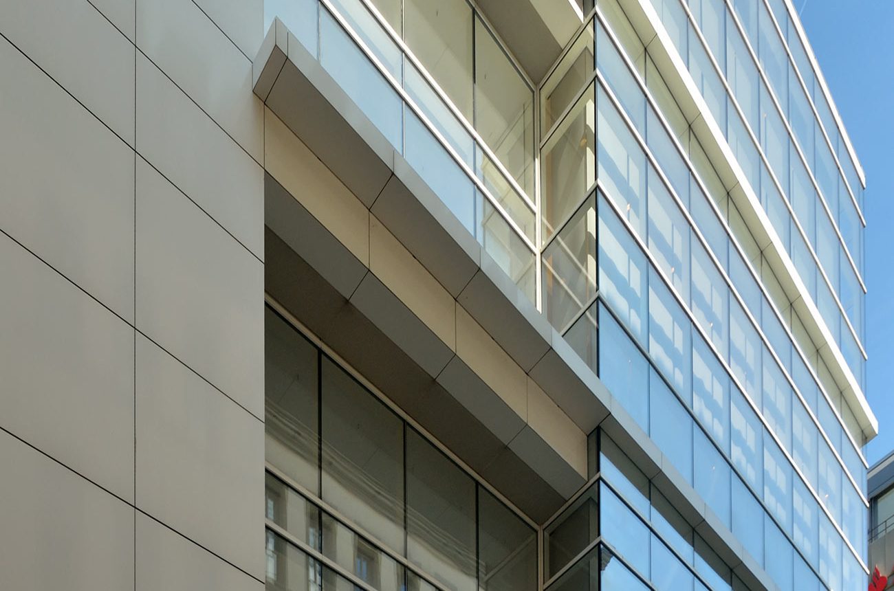 - Blechfassade aus großformatigen Alublechen mit rückseitig angebrachter Einhängekonstruktion